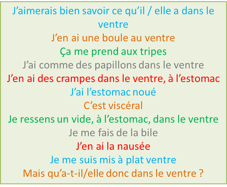 EXPRESSIONS DE LANGAGE bien connues et liées au ventre !